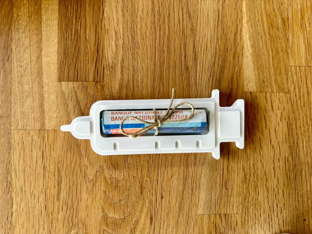 „Finanzspritze“, Geld-Gutscheinverpackung