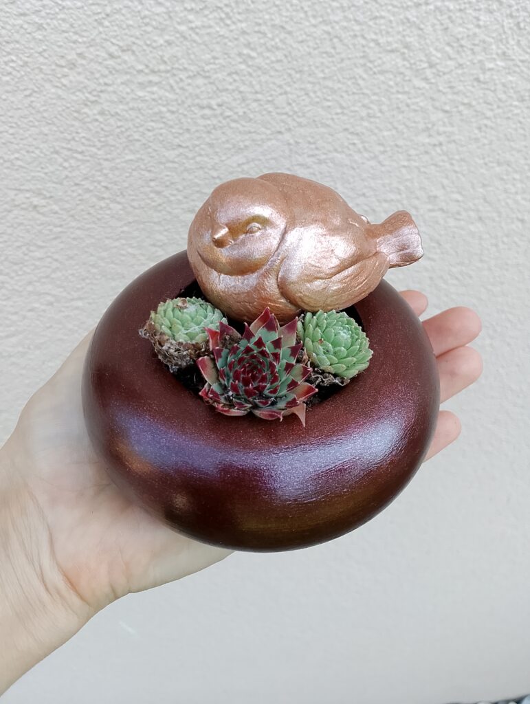 Betonschale mit Vogel & Bepflanzung & Bohrloch