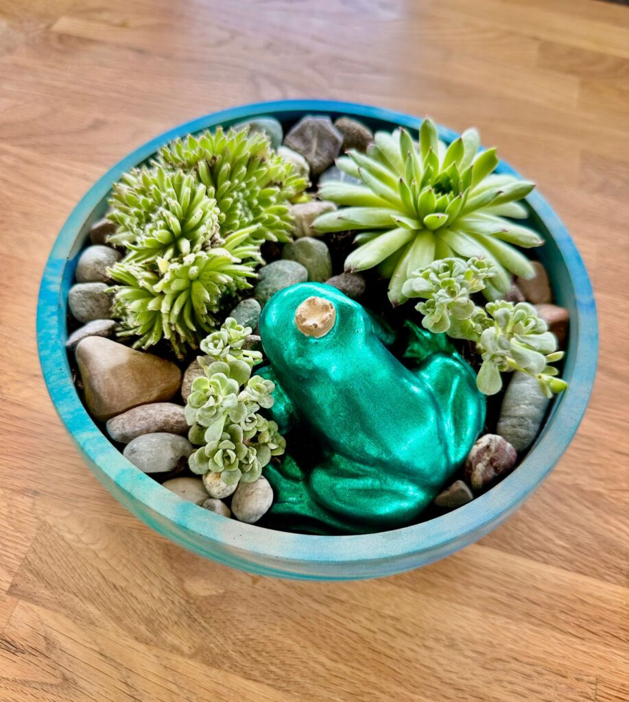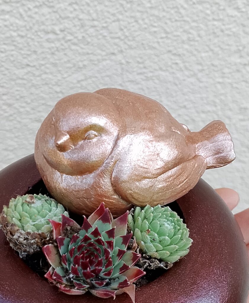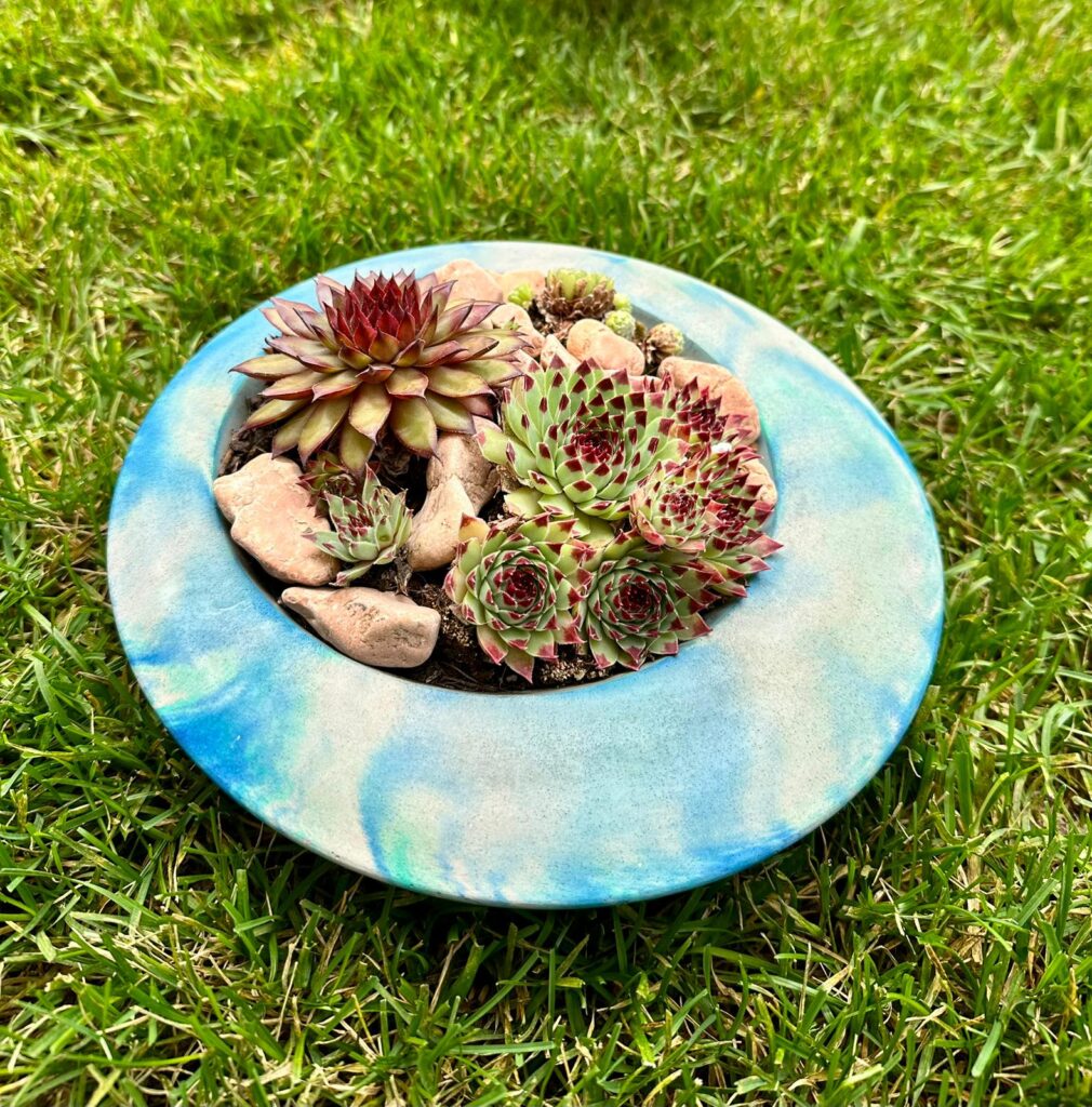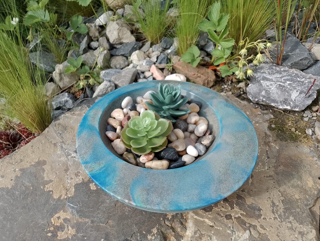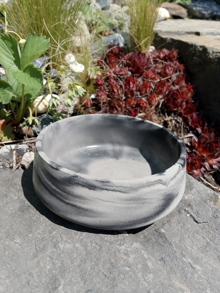 Betonschale mit Vogel & Bepflanzung & Bohrloch